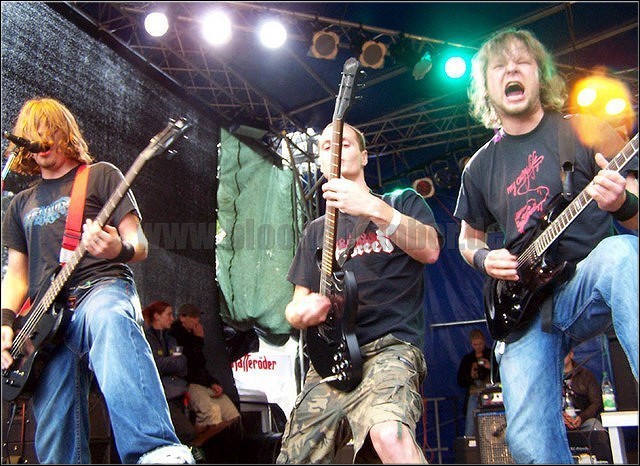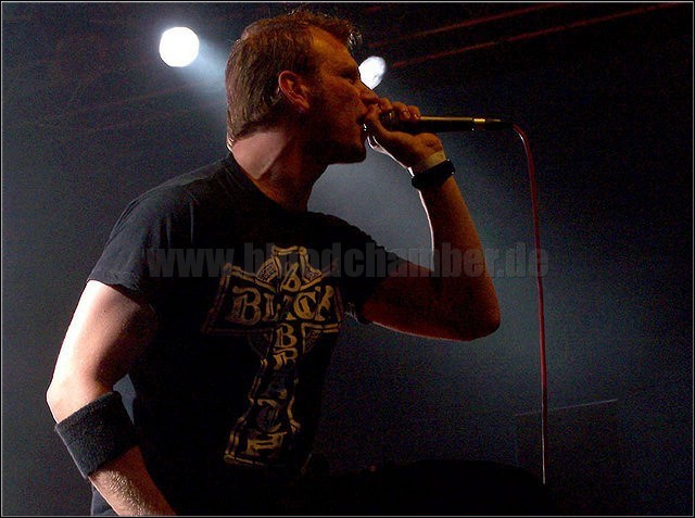 Heute scheint Damentag zu sein. Als Headliner steht Deutschlands geschminkteste Metalcore-Band auf der Bühne. Leider gilt bei CALIBAN wieder die These: Hat man sie einmal gesehen, hat man alles gesehen. Die Show der Ruhrpottler wirkt and diesem Abend schon etwas kraftlos und routiniert. Wahrscheinlich spart man sich die Kraft für den am nächsten Tag anstehenden Auftritt in Wacken. Den größten Eindruck macht immer noch Shouter Andy, dessen überzeugendes Gebrüll so gar nicht zu den schwarzen Strichen unter seinen Augen passen will. Klampfer Denis singt immer noch (obwohl ich es ihm ausdrücklich verboten habe) krumm und schief die cleanen Vocals. Man hat ihm dieses Mal aber wohl ein bisschen den Saft abgedreht; ganz nach dem Motto: Du bist zu leise; ich kann dich gar nicht hören.