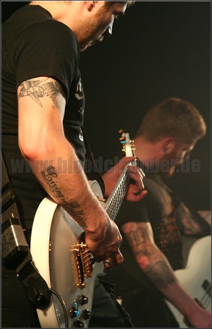 An diesem Abend sind BN wohl die am wenigsten stumpfe Band, auch wenn es in der Rhythmusfraktion hin und wieder einige kleinere Hänger gibt. Das vor allem im Leadgitarrenbereich mehr als nur MAIDEN-lastige Material wirkt recht ausgearbeitet, harmoniert in weiten Teilen mit den souveränen Vocals und macht so anfangs durchaus Spaß. Umso unverständlicher, dass die Band ihren langen Set dann derart mit Midtempo-Stücken zuballert: Ab Song Nummer fünf ziehen sich die einzelnen Passagen oft wie Kaugummi, verlieren sich die gelungenen Gitarrenduelle zunehmend unter einem Haufen überflüssiger Spielereien, und selbst ein Kracher wie "Vinland" käme um Einiges knackiger, wenn er straffer durcharrangiert wäre. Die Teile an sich sind also durchaus gefällig, nur fehlt es BASTARD NATION derzeit noch ein wenig an Durchschlagskraft und Organisation. [rs]