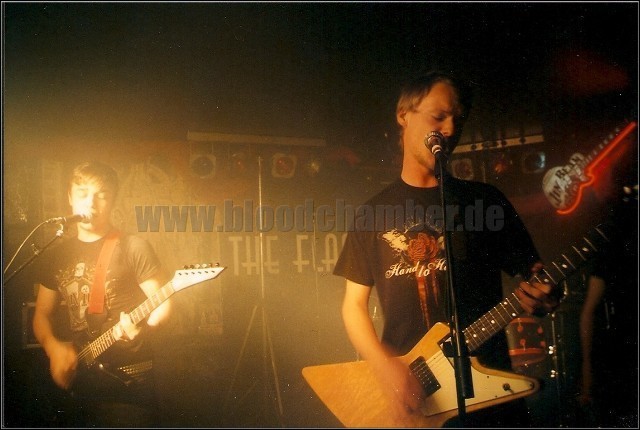 Die Jungs von FALL OUT legen ziemlich massiv los. Und das erste, das mir hierzu einfällt ist TRIVIUM. Ja richtig, FALL OUT bewegt sich ziemlich nah am hochklassigen Vorbild, und legt ebenso viel Wert auf Melodie und Clean Voice. Greini und Marcus teilen sich den Gesang. Der Sound ist voluminös abgemischt, druckvoll und klar. Ich muss sagen, wenn FALL OUT so einen Klang auf eine ihrer nächsten Veröffentlichungen konservieren würden, dann wäre es ein absoluter Gewinn für de junge Band. Denn die melodischen Gesangsharmonien lechzen förmlich nach einer fetten Untermalung und die bekommt die Band heute auch. Bass unterlegte Gitarrenleads, massive Riffs und doppelstimmiger Gesang stehen gut im Licht, das Zusammenspiel ist glänzend umgesetzt. Das hinterlässt staunende Augen und offene Münder. Ein bisschen Spaß muss sein und so bekommt das schüchterne Publikum noch das fabelhafte BRYAN ADAMS-Cover "Run To You" metallisch vor den Latz geknallt. Wer die aktuelle EP haben möchte, kann dies über die Bandhomepage (siehe unsere Band-Infoseite) tun. Thumbs Up!
