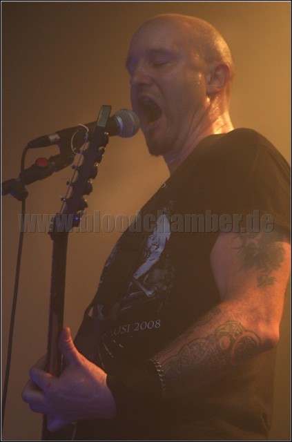 ARTLESS jedenfalls haben nachdem die große Raucher-Reisewelle wieder ihren Platz im Kulturbundhaus gefunden hat, keine große Mühe, die Stimmung zu halten. Im Gegenteil, beim direkten Vergleich hat die Vorband leider das Nachsehen, da vor allem das Zusammenspiel bei ARTLESS bedeutend professioneller wirkt - und das trotz der kleinen Zwangsumstellung in der Besetzung (Der Gips am Arm des Sängers und sonst auch Gitarristen spricht für sich). Inhaltlich gibt sich der Death Metal der Vogtländer überraschend vielseitig und melodisch, aber auch der Wumms kommt nicht zu kurz. Schöne Soli gibts gratis dazu. Eine echte Überraschung.