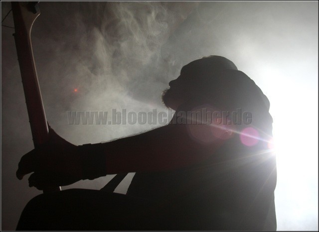 Dicht gedrängt wartet die Meute nun auf den Headliner. TOTENMOND haben ihre neue Scheibe "Thronräuber" mitgebracht, um sie den Massen direkt in ihre Gesichter zu schleudern. Schon immer hat die Band polarisiert, musikalisch überrascht und gerne auch mal - besonders mit ihren deutschsprachigen Texten - die Zuhörer provoziert. Mit einem guten Einstieg (Nebelwaberndes Intro samt gelungenem Übergang zum Opener) fängt die Band meine Aufmerksamkeit ein, danach aber - und nun folgt der extrem subjektive Teil dieses Konzertberichts - geht sie mir am Arsch vorbei. Offensichtlich stehe ich auf der Schattenseite der Polarisationsmauer, denn dieser gehaltlose und ungeschliffene Brei aus Death / Doom / Hardcore / Crust oder wasweißich noch wird auch mit den neuen Songs nicht besser. Während mein Geist sich aber immer weiter verschließt, öffnet er sich für den überwiegenden Teil der vorn stehenden Anwesenden umso deutlicher (insofern er noch nicht allzu sehr von den örtlichen Alkoholika vernebelt wurde). Zwischendurch wird das Set für einen kleinen Geburtstagsgruß an eines der Scheddel-Crewmitglieder unterbrochen - selbstredend begleitet von einer Handvoll Gratis-Schnäpse, die nur einen weiteren Schluck Benzin in der flammenden Glut darstellen. Die Feier geht somit ungehindert und mit neuem Elan weiter. Auch wenn mir das persönlich an diesem Abend vielleicht nicht so ganz klar wird, irgend etwas wird die Band schon richtig machen.