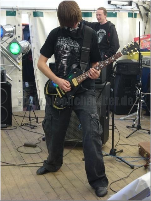 Den Abschluss des ersten Tages besorgen dann die Lokalmatadoren ARTLESS, die aufgrund einer Shirtdichte von gut 50 % reichlich Zuspruch finden und den beliebten vogtländischen Klassiker „Gehacktes am Stück“ servieren. Da sich dieser über weite Strecken genauso kunstvoll wie der Bandname ausnimmt, gewinnen später andere, oftmals unterschätzte Beschäftigungen die Oberhand: Trinken, angetrunkene Konversation, sowie reichlich betrunkene STEELCLAD-Beweihräucherung sind schließlich akzeptable Alternativen zu einer solide abgefeierten Hausband, von der man sich jedoch nicht unbedingt einen Patch auf die Kutte nageln würde.
