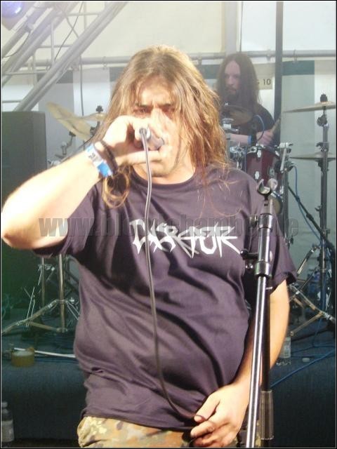 Nicht ganz so unkaputtbar sind heute SPAWN, die neben ihrem gewohnt deftig walzenden Riffgewitter auch eine angeschlagene Kehle mitbringen. Musikalisch jedenfalls liegt beim bisweilen arg zerbreakten, aber stets saftigen Material alles im grünen Bereich, als man ankündigt, dass von den drei noch geplanten Songs mit viel Mühe einer zu schaffen sei: Eine nicht vollständig verheilte Stimmbandentzündung macht dem sichtlich kämpfenden Fronthühnen das Singen zur Tortur, was die bis dahin überaus tight agierenden Berliner zu dieser unglücklichen Entscheidung zwingt. So lässt sich das folgende „Hammer Smashed Face“ denn auch nur mit geschlossenen Augen genießen – auf der Bühne wird vermutlich bereits Blut gespuckt...