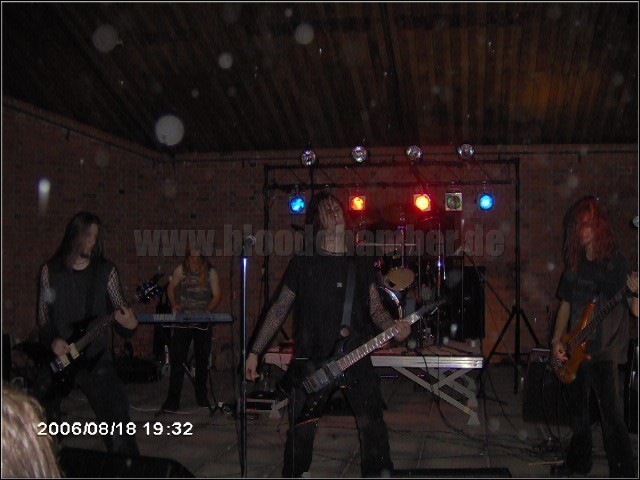 In Barth angekommen, stelle ich schnell fest, dass der Zeltplatz ein Ende besser gefüllt ist, als letztes Jahr um diese Zeit. Aber erstmal Zelt aufbauen und ein Pils in den Hals, bevor ich hier und da ‚Hallo’ sage. Ein paar Bier später wird der Himmel dunkelgrau und es fängt an zu gießen. Und es scheint nicht aufhören zu wollen. Auch nicht, als pünktlich um 19 Uhr, CURSED ANGUISH aus Lübeck die Bühne betreten. Die fünf Hansestädter bieten soliden Black Metal, der sehr melodisch rüberkommt und die Fans recht zahlreich, trotz andauernden Regens, vor die Bühne lockt. Ich kannte diese Band überhaupt nicht, aber bin angenehm überrascht, was die Jungs dort abliefern. Der Gig ist beendet und ich klitschnass. Also gehe ich zum Zelt, wringe mein Shirt aus und setze mich ins Auto, um etwas zu trocknen. Dadurch verpasse ich leider die Hannoveraner INQUIRING BLOOD. Und das ärgert mich wirklich, denn nach Fanauskünften sollen sie endgeil gewesen sein.