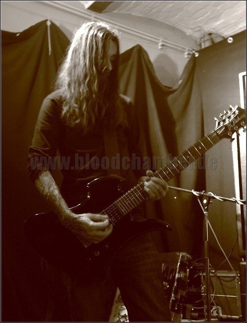 Pünktlich um 21.30 Uhr geht es dann fulminant los. RAMESSES wissen wie man kleine Clubs zum Brummen und Glühen bringt, und die circa einhundert Anwesenden nehmen die psychedelischen Riffsalven dankbar entgegen. RAMESSES sind schräge Vögel, sehen kauzig aus und genau das macht sie so sympathisch. Hier gibt es kein Posertum Marke Black Metal oder sonstiges Rumgeeier, hier wird einfach nur herrliche Musik geboten, die zum Versinken einlädt. Die Stimme hat eine ordenliche Portion Hall abbekommen und klingt so noch abgefahrener und betörend ohne Ende. Als ich Fotos in der ersten Reihe mache, fallen mir zwar fast die Ohren ab, aber hey: Doomiger Stonerstuff muss so klingen; laut, fies und dreckig. Die Musiker sind sichtlich in ihrem Element und das Publikum begeistert ob des Dargebotenen.