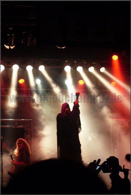 Unheimliches Potenzial schlummert der Legende nach auch in THE GATES OF SLUMBER, und angeblich hat sich selbiges auf deren letzter Scheibe "Conqueror" endgültig Bahn gebrochen. Der Auftritt verspricht also allemal interessant zu werden. Zunächst jedoch der standesgemäße Downer: Phasenweise komplett fehlender Monitorsound im neuen Stück "Children Of Satan" sorgt für einen verständlicherweise extrem angepissten Karl Simon, sorgt leider auch für eine extrem nach "amerikanisches Rockstargehabe" riechende Grundstimmung. Zwar fangen sich sowohl Technik als auch Karl nach relativ kurzer Zeit, aber subjektiv ist der Gig zu diesem Zeitpunkt schon leicht beschmutzt. Dazu wächst mit jedem gespielten Stück die Einsicht, dass das neue Material ("Ice Worm", "Trapped In The Web") mitnichten der erwartete Entwicklungsschritt in epischere Gefilde ist, sondern lediglich eine Fortsetzung des bisherigen, eher altbackenen Schaffens des Dreiers. Den frenetischen Fanblock vor der Bühne indes scheint das gar nicht zu stören und so werden die Musiker zumindest in Teilen des Publikums nach allen Regeln der Kunst abgefeiert. Aus diesem Blickwinkel also durchaus eine gelungene Vorstellung.