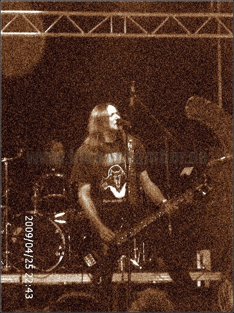 Dann RUTHLESS! Für mich ein grandioses Ereignis, zumal die Band vornehmlich Stücke der ersten MLP "Metal Without Mercy" zu Gehör bringt: Nach dem eingespielten Intro steigt man mit "Gates of Hell" ein, um anschließend das gnadenlos geile Titelstück in die Runde zu schleudern. Im Verlaufe des Sets folgen "Bury the Axe" und "Mass Killer", sowie ein unveröffentlichtes Stück namens "Wind Of War", welches sich demnächst als Bonus des "Metal Without Mercy"-Re-Releases die Ehre geben soll (s. Myspace-Seite der Combo).