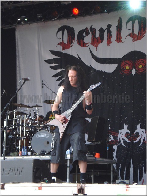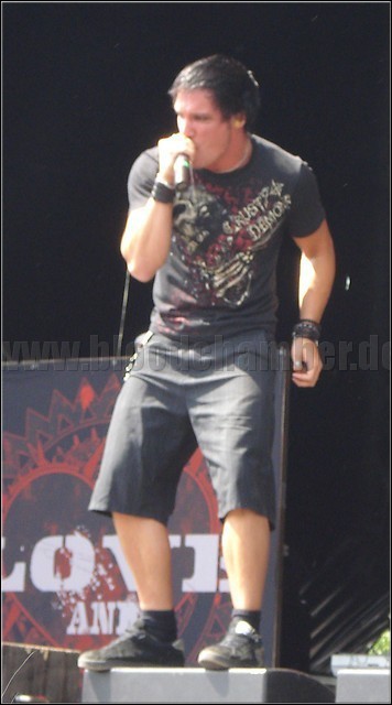 Auf die Band aus den Staaten hab ich mich extrem gefreut – und wurde derbe enttäuscht. Obwohl ich viele Songs der Band kenne, fällt live unglaublich stark auf, dass DEVILDRIVER von ungefähr drei verschiedenen Rhythmiken leben. Da kann auch ein starker Dez Fafara nichts dran ändern. Sicherlich ist er einer der besten Shout/Sänger an diesem Wochenende, aber im Gegensatz zu GOD FORBID, wo jeder Song noch eine unterschiedliche Hookline oder Melodie bieten kann, denke ich beim vierten oder fünften Song „Kam der nicht eben schon mal? Oder ist der Song so lang?“. Schade eigentlich, aber immerhin weiß ich jetzt, wofür ich wohl kein Geld für Live Konzerte mehr ausgeben werde. [sj]