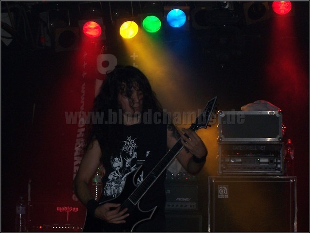 Als musikalischer Durchschnitt verschrien, versuche ich mir nun mal ein Bild von einem Konzert von MALEVOLENT CREATION zu machen. Doch mehr als Durchschnitt erwartet mich auch im Ohrakel nicht. Man muss schon tierisch auf die Musik stehen, um wirklich Spaß zu haben. Nach einer langen Wartepause dauert es noch ein paar Songs, bis die Stimmung erreicht ist, die VOMITORY ohne Unterbrechung hatte, aber einige Fans sind scheinbar anwesend. Ein harter Kern bleibt vor der Bühne, viele andere machen aber entweder schon einen Abflug oder trudeln an der Biertheke ein. Typisch für die Amis ist wohl die „Leck-mich-am-Arsch-Einstellung“, das offene Hemd des Frontschweins, das leider keine Groupies anlockt und die fehlende Leidenschaft, die manchmal die Lethargie von SLAYER erreicht. Für diesen Vergleich finden sich aber deutlich zu wenige Die-Hard-Fans in der Halle und deswegen ist der Auftritt, multipliziert mit der Musik, die durchaus ihre Höhepunkte hat, eines Headliners nicht würdig.[mbo]