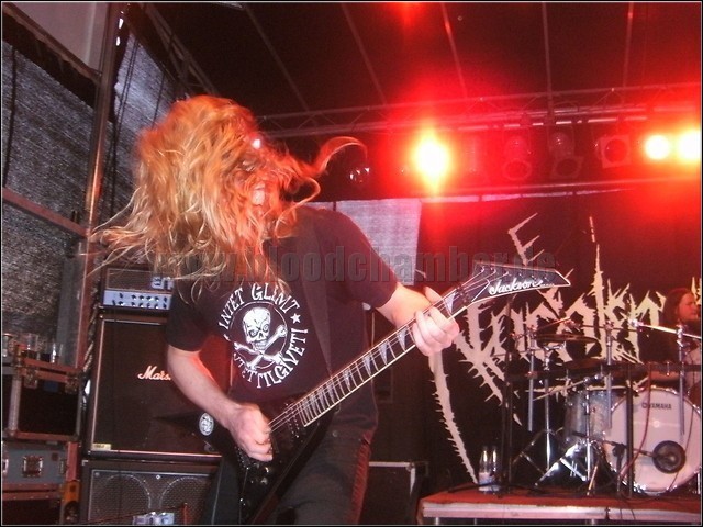 Im Anschluss zu den Thrashern kriegt man von den Franzosen AFFLICTION GATE mal zur Abwechslung ein bisschen Death Metal geboten. Gut, wir sind hier immernoch bei den Bitterfelder Metal Maniacs, so kann man schon davon ausgehen, dass hier kein mathematisches Gefrickel auftritt. Nein, AFFLICTION GATE spielen bodenständigen, erdigen Todstahl der alten Schule. An der Show wird mir für meine Verhältnisse ein bisschen zu viel gespart, musikalisch sind die Jungs aber top. Vor dem Festival war die Band für mich noch ein unbeschriebenes Blatt, doch diese überzeugt mich eines besseren. Man merkt, dass die Band ihr Handwerk versteht und die wehenden Haare der Menge sind die Bestätigung.