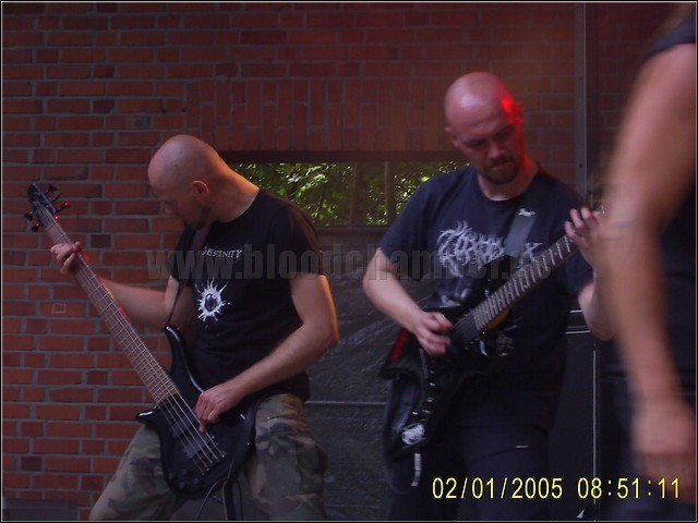 Anders, als bei IRRBLOSS, sieht es da schon bei ihren Landsmännern von THORNIUM aus, die sich ständig zwischen den Songs beschweren, dass mal hier und mal da was nicht hinhaut. Die anderen Bands haben es doch auch hinbekommen; warum also diese Schweden nicht? Egal, THORNIUM bringen Songs vom 2009er “Mushroom Clouds And Dusk” sowie vom deutlich schwächeren 2010er Album “Fides Luciferius”. Shouter Typh knarzt ordentlich und klingt ähnlich wie Abbath, aber der Funke will nicht überspringen. Ob es am Tageslicht oder dem ständigen “More bass on this monitor” liegt…, wer weiß. Auf jeden Fall helfen da auch nicht die beiden, in Front aufgestellten, großen umgedrehten Kreuze nicht. Eine kuriose Augenweide der Band ist übrigens der Drummer, der beim Trommeln so eigenartige Mundbewegungen macht, dass man hoffen muss, er bekommt keine Maulsperre.