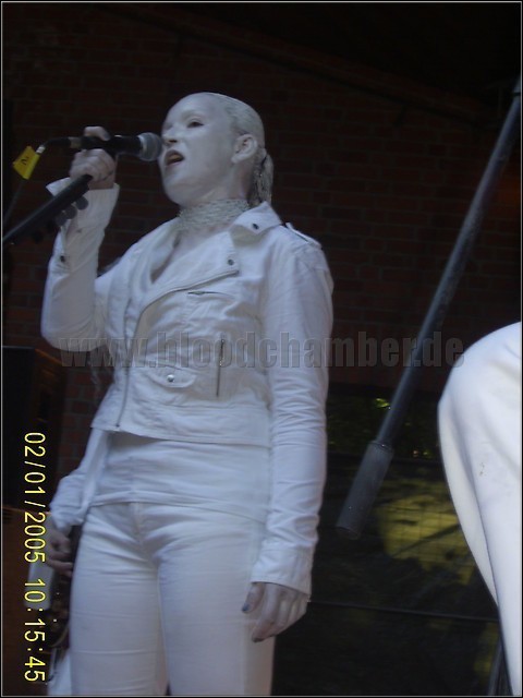 Endlich spielen sie hier. Endlich sind sie auf der Bühne. TODTGELICHTER geben einen Vorgeschmack auf ihr kommendes Album. Wer hier auf herkömmliches Corpsepaint wartet, der staunt nicht schlecht, als die Hamburger die Bühne betreten. Gänzlich in weiß … richtig gespenstisch, von Fuß bis zum Haar! Schade, dass die Spielzeit von TODTGELICHTER so früh ist, denn bei entsprechendem Bühnenlicht wäre ihre Maskerade garantiert noch besser gekommen. Egal, die Band zeigt hier, dass sie nicht umsonst derzeit eine der angesagtesten Black Metal Bands Deutschlands ist. Der erste Song vom „Schemen“-Album erklingt und die Fans rasten aus. Dass Mort bei der Band nicht mehr dabei ist, stört wirklich kaum, denn Basser Nils hat den Gesang übernommen und das macht er richtig gut. Und noch eine Neuerung gibt es bei TODTGELICHTER. Nach ein paar Songs kommt Marta, die Ehefrau des Drummers Tentakel Parkinson, auf die Bühne. Erst steuert sie klare Gesänge bei, die der Band unheimlich gut stehen. Dann beginnt auch sie zu keifen und steht Nils in nichts nach. Und Marta und Nils geben sogar klare Gesänge zum Besten. Wer die Chance hat, TODTGELICHTER mal live zu sehen, sollte sich dies nicht entgehen lassen. Die Band gibt immer alles auf der Bühne. Und nach dem Auftritt bin ich schon sehr sehr gespannt auf das kommende Album.