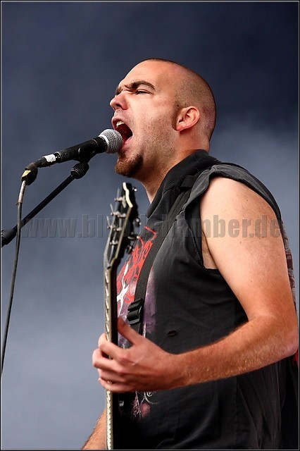 MONSTROSITY, das erste Schwergewicht dieses Festivals. Leider bin ich ungefähr während der Hälfte des Gigs noch zu Fuß durch den Schlamm unterwegs, da war der Laufweg im Jahr zuvor deutlich leichter und unbeschwerter. Der Groove packt mich aber schon beim Gehen und mit beschleunigtem Gang lande ich endlich vor der Bühne und kriege noch genau 3 Songs ab. Die sind wirklich klasse, aber ich bin doch etwas sauer auf mich, weil ich zu spät kam. Unverzeihlich und ich denke jeder in meiner Situation würde sich da in den Allerwertesten beißen wollen. [mbo]