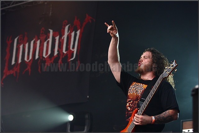 Die anschließend auftretenden Porngrinder von LIVIDITY haben die letzten beiden Platten lang nicht mehr überzeugen können, trotzdem hat ja jeder eine Chance verdient und deshalb schaue ich mir die Gurgelbande mal genauer an. Und siehe da, es geht doch noch. Es macht richtig Spaß Mr. Kibler und seinen Mumu-Suchtis beim grunzen, ballern und grooven zuzuschauen. Richtig erfrischend, Songs über das Zerstückeln von Frauen zu hören. Die Jungs sind aber auch fair zur Damenwelt, denn meistens werden diese ja im Anschluss noch beglückt. Wer will denn da schon kleinlich sein und sich beschweren?