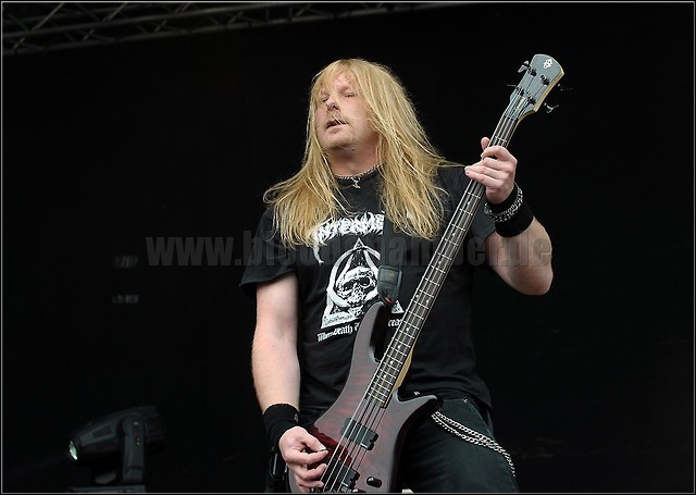 Da sind ASPHYX schon ein ganz anderes Kaliber. Die spielen aber auch keinen Black Metal, sondern Old School Death Metal. Martin van Drunen ist gut drauf und peitscht das Publikum wie gewohnt mit seinen markigen Sprüchen an. Die liegen ihm sowieso zu Füßen und so wird gemeinschaftlich die Matte zu Songs wie ‘‘Death… The Brutal Way‘‘, ‘‘M.S. Bismarck‘‘ oder dem obligatorischen ‘‘The Rack‘‘ geschwungen. Die Band kann eigentlich nichts verkehrt machen. Die Songs sitzen, der Sound ist gut und die Stimmung ebenso.