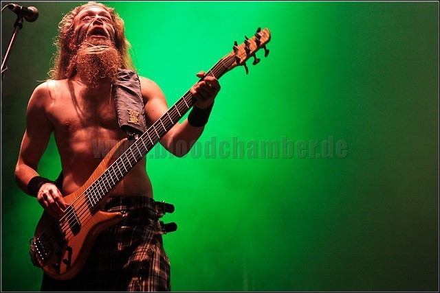 Es folgen die eher heidnisch angehauchten PRIMORDIAL, die ich mit meinen Kumpels relativ kaputt von der Wiese liegend aus verfolge. Konnte ich mit dem neuesten Album der Iren seltsamerweise noch nicht besonders warm werden, reißen die Stücke live Bäume aus. Der verträumte, angehallte Klargesang lädt zum mitmachen ein, selbst wenn man angeschlagen und völlig übermüdet auf dem Feld um den Soundturm, deren Tontechniker übrigens zu jeder Zeit einen sehr guten Job machten, vor sich hinvegetiert. Die Songauswahl erscheint mir ebenfalls sehr durchdacht, Langeweile machte sich zu keinem Moment breit. Es ist immer wieder angenehm, wenn mit hingebungsvoller Leidenschaft gespielte Musik Dinge wie Fernweh oder Nachdenklichkeit in einem hervorrufen kann. Diesen Job haben PRIMORDIAL mit Bravour gemeistert. [mj]