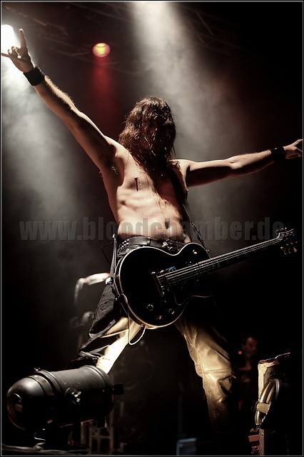 Ahhhhhhh, endlich ist es wieder Helmuth-Time, denn BELPHEGOR sind in da house! BELPHEGOR machen heute alles richtig: Die Songs sind rasend schnell und gut durchdacht, immer wieder gibt es, naja, Verschnaufpausen nicht wirklich, aber eben jene Momente, in denen eine wuchtige Gitarrenwand von einer angenehm treibenden Doublebass unterstützt wird. Zwischendrin dürfen Helmuths wohl überlegte Ansagen nicht fehlen. ’’Party-San, you fuckers’’ oder eben ’’Germaaaaaniiiaaaaaa’’ und zum krönenden Abschluss ’’Deutschland, Deutschland, Party-San’’. Doch lange Zeit zum Lachen bleibt einem nicht, denn Songs wie ’’Lucifer (bloodfucking) Incestus’’ trümmern einem den Schädel kaputt und deshalb kommen ja wohl alle her. [ph]