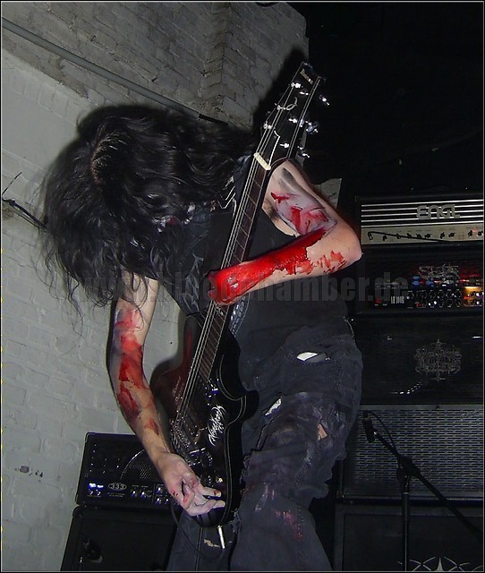 Eine halbe Stunde später ist es dann soweit. V. und seine Mannen betreten die Bühne. Und sie begrüßen die Rostocker mit "We are Blackshore from Danmark and we are here to eat some cookies with you!". Da sind sie wieder, die Kekse! Im Gegensatz zu Barth sind sie heute als Quintett hier und haben somit zwei Gitarristen, was dem Suicidal Black Metal der Dänen noch ein Ende mehr Druck verleiht. An der Show gibt es auch heute nichts zu meckern. V., blutverschmiert, gibt der Musik mit seinem wahnsinnigen Gesichtsausdruck die nötige Optik und auch Basser S., mit Corpsepaint, fügt sich heute nahtlos ein. Die Musik von MYRD ist wie die Show, roh, theatralisch und geil. Seit dem BMOA haben die Dänen mit mir eh einen Fan mehr.