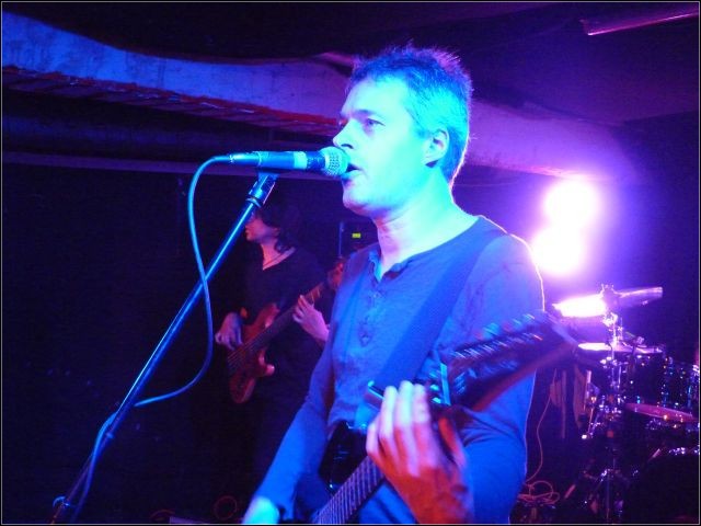 Während einer etwa zwanzigminütigen Umbaupause wird die Bühne hier von einem Instrument und dort von einem Mikro befreit und sieht hinterher auch bei weitem nicht mehr so überfrachtet aus – im Gegenteil, mangels Back-, Sidedrop oder ähnlicher Bühnenausstattung wirkt der Bastard Club plötzlich wie das spartanische Kellergewölbe, das er ja auch irgendwie ist. Macht aber nix, so haben die Aktivposten von THRESHOLD wenigstens den nötigen Platz, um sich ausgiebig auszutoben. So fällt Fronter Damian Wilson schon mal fast von den Boxen in die Zuschauermenge, während die beiden Gitarristen sich immer wieder in Pose schmeißen, um sich packende Duelle an ihren Instrumenten zu liefern. Der Rest der Band ist zwar nicht ganz so auffällig, dies liegt aber besonders im Falle von Keyboarder und Backgroundsänger Richard West keineswegs an mangelnder Spielfreude, wird er mit seinem Instrument doch fast in den Backstage-Bereich gedrängt. Das habe aber System, meint Sänger Wilson – jede gute Metalband versuche schließlich, ihren Keyboarder zu verstecken. Das haben THRESHOLD jedoch gar nicht nötig. Erstens ersticken ihre Kompositionen glücklicherweise nicht in Keyboard-Overkill, und zweitens sind sie allesamt Könner ihres Fachs. Verstecken muss sich also wahrlich keiner der Sechs.