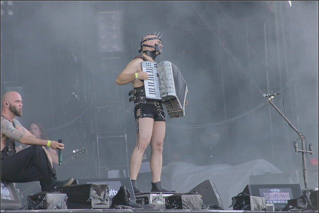 Nach so viel rumrüpeln zog es mich wieder auf die Freifläche vor die Hauptbühne, wo sich bei gefühlten 100°C in der Mittagssonne die ersten einfanden, um sich von Gothic Metal à la TRISTANIA berieseln zu lassen. War der Start noch etwas träge, steigerten sich die Norweger im Laufe ihrer Spielzeit immer mehr und zogen ein sichtlich entspanntes Set ab, das nur ein paar wenige Hänger aufweisen konnte. Besonders angetan war ich allerdings von der Performance von Saitenelse Gyri, die mit ihrer ''Ihr-könnt-mich-alle-mal''-Attitüde die wohl coolste Sau auf dem ganzen Platz war. Norwegen pur, oder so was in der Art.