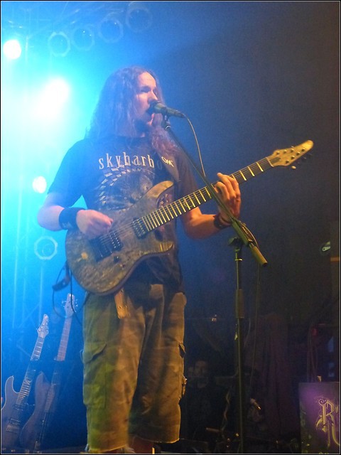 …TEXTURES, die bereits des Öfteren auf dem Euroblast zu Gast waren und sich im Laufe der Zeit zu einem absolut würdigen Headliner gemausert haben. Das Publikum jedenfalls frisst den Niederländern sofort aus der Hand und feiert nahezu jede Note frenetisch ab. TEXTURES haben aber auch ein Gespür für die richtige Balance aus Aggression und progressiven Strukturen, zudem verfügen sie über die nötige Routine, um eine Halle im Handumdrehen zum Kochen zu bringen. Vielleicht ist es manchmal sogar etwas zu viel Routine, denn wirklich spontan wirkt der Auftritt zu keiner Zeit, aber das ist natürlich Meckern auf hohem Niveau. Alles richtig gemacht, also – im Gegensatz übrigens zu dem strunzbesoffenen Horst vor uns, der nahezu über die gesamte Spielzeit vollstorno herumtorkelt und einem Mädel, das an ihm vorbei möchte, mit Schmackes unkoordiniert seinen Bierbecher ins Auge haut. Naja, Dummheit kann man nicht verbieten und den starken Auftritt von TEXTURES schmälert es auch nicht wirklich. Ein würdiger Abschluss des ersten Tages!