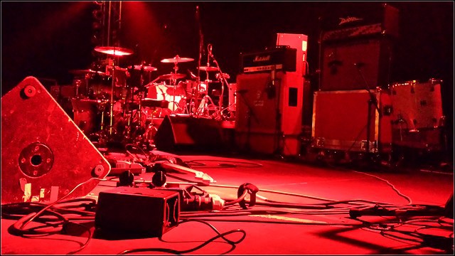 Im Schubladendenken verwurzelte Anwesende werden im Anschluss ein wenig verwundert die Nase rümpfen. Mit CASPIAN betritt eine Band die Bühne, die von der musikalischen Orientierung im Grunde nicht so richtig in die Tour-Besetzung passt. Für mich persönlich ist dieser Schachzug allerdings einer der Gründe überhaupt hier zu sein. Und mit dieser Meinung stehe ich sicher nicht alleine da – erst recht nach dem Auftritt. Die ebenfalls aus Massachusetts stammenden instrumentalen Post Rocker gehören zu der fast schon typischen Gemeinschaft aus Bands, die mit Laut-Leise-Dynamiken, elegischen Klangteppichen, plötzlichen Gitarren-Eruptionen und ganz viel Gefühl die Szene in den letzten Jahren erst so richtig groß gemacht haben. Für viele Experten mag dies inzwischen schon herkömmlich sein, CASPIAN schaffen es jedoch noch immer mit ihrem Material zu faszinieren – live erst recht. In den folgenden Minuten fühlt man sich wie in einem Tunnel. Als wäre sonst niemand mehr in der Essigfabrik. Nur du und die Musik. Die Band erzeugt dabei eine tiefemotionale Stimmung. Am 25.August 2013 verstarb Bassist und Gründungsmitglied Chris Friedrich mit gerade einmal 33 Jahren. Vielleicht ist es reine Interpretation, aber möglicherweise wirkt der Auftritt auch deshalb so verzweifelt traurig. Mit „The Heart that Fed“ ist auch eine Nummer der aktuellen EP mit von der Partie. Wer sich die Musik der Band aber mal in ganzer Kunst aufs Ohr legen möchte, sollte sich das 2009er Album „Tertia“ gönnen. Der Gig endet mit „Sycamore“, bei dem die gesamte Band ihre Instrumente beiseitelegt und sich am Schlagzeug versammelt, um gemeinsam zu trommeln. Eine coole Idee, die zu einem rundum gelungenen Auftritt passt.