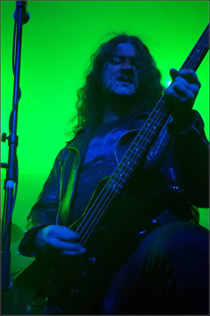Den Anfang nehmen VENENUM, ein heißer Geheimtipp aus deutschen Landen. Das Quartett hat dabei gerade mal die Hälfte der beschaulichen Bühne zur Verfügung, weil, wie erwartet könnte ich sagen, im Hintergrund schon Krempel en masse von WATAIN zu erahnen ist. Die giftgrün beleuchtete Bühne wird in dichten Nebel gehüllt und mit einem Mördergroove, der eine interessante Schnittmenge aus ASPHYX und DISMEMBER bietet, werden die Leute immer dichter vor die Bühne gezogen. Die Setlist besteht aus dem relativ stur runtergezockten, selbstbetitelten Minialbum. Ansprachen ans Publikum Fehlanzeige, auch der Bewegungsradius ist stark eingeschränkt. Doch mit einem unheimlich tighten Sound und souveräner Attitüde nutzen sie ihren Underdogflair gut aus. Bei so manchem Langhaargeschöpf wird da definitiv Interesse geweckt.