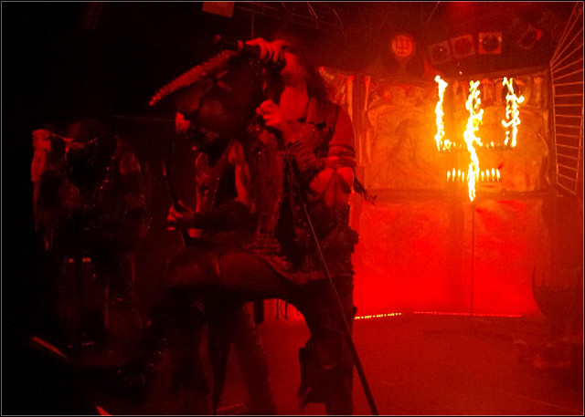 Lange Umbaupause, dichtes Gedränge, modriger Geruch, der von der Bühne dringt. Der schwarze Vorhang fällt, die fackeltragenden Musiker entern die Bühne. WATAIN machen sich startklar und fegen dann auch gleich mit den Nackenbrechern „De Profundis“ und „Malfeitor“ durch die Halle. Danach setzt es erst einmal „klassische" WATAIN-Songs – immerhin sind das mittlerweile zu Gassenhauern gereifte Hits. Ob nun das mit obligatorischem Blutkelch begossene „The Devil's Blood“, das epische „Legions Of The Black Light“ oder das neue „Sleepless Evil“ - die Fans würdigen jede der Nummern mit großer Intensivität. Nur das beinahe belanglos wirkende "Black Flames March" ist für mich und auch einige Umstehende annähernd am Durchhänger. Der geifernde Giftzwerg Erik ist unterdessen wie besessen, fuchtelt, torkelt, tänzelt wie eine Schlange um den Mikroständer und steigert die Bühnenpräsenz in ekstatische Höhen. Etwas enttäuschend wirkt Gitarrist Set heute, der anscheinend erst wieder den Rhythmus finden muss – in den USA war er zuvor nicht mit von der Partie, ebenso wie Bassist A. (Für ihn musste Erik dort auch live in die Saiten hauen.) Nachdem die Band gute 90 Minuten Vollgas gegeben hat und im Anschluss an „The Wild Hunt“ schon die Bühne verlässt, macht sich das nicht gerade an große Spielfreude gewöhnte BM-Herz auf ein kurzes Finale gefasst. Da kommen die Herrschaften zurück und zerlegen in aller Endgültigkeit die schnaufende Schar im Saal. Mit der Höllenausgeburt „Outlaw“ kommt die erste Zugabe und die Münchner ziehen den neuen Song in sich rein wie Schwämme, die schon seit August vergangenen Jahres gierig darauf warten. Schließlich erklingt neben dem hymnenartigen "Sworn To The Dark" und "Holocaust Dawn" ihr, meiner Meinung nach, großes Opus: „Waters Of Ain“ wird heute ohne einen zusätzlichen dritten Gitarristen gespielt und wieder fallen mir eine handvoll Spielfehler von Set auf, die die Solipassagen natürlich etwas zermürben.