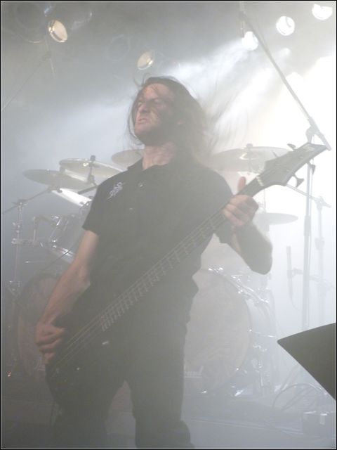Einen anderen Ansatz verfolgen LEGION OF THE DAMNED, denn gleich die Hälfte der zehn Songs starken Setlist stammt vom neuen Werk „Ravenous Plague“. Das ist aus zwei Gründen sinnig, denn so hat das neue Gitarrenduo, bestehend aus Twan van Geel & Livemann Hein Willekens, ein sicheres Fundament an „eigenen“ Liedern, außerdem fehlen so selbst den größten Meckerfritzen die Argumente, LOTD auf die Ein-Lied-Formel zu reduzieren, weil nicht nur „Doom Priest“ andere Facetten der Niederländer zeigt. Die Möglichkeit eines Stimmungstiefs dank längerer Etappen mit neuen Liedern umschifft die Band problemlos und feuert mit „Son Of The Jackal“ an zweiter Stelle gleich den perfekten Kracher ab, um mindestens die vordere Hälfte des Saals auf die folgende Orgie des Zerstörungsthrash einzunorden. Während die ganze Band enorm präsent und willig wirkt - besonders Frontmann Maurice Swinkels ist überall zu finden und strahlt vor positiver Energie, wie ein frisch ins Wasser zurückbeförderter Fisch - fällt auf, dass Twan sich (anfangs) zum Solieren noch von der Menge abdreht und dabei arg konzentriert aus der Wäsche schaut. Statt von Schüchternheit oder Unsicherheit zu spekulieren, darf man das aber getrost auf den ersten Tourabend schieben, an dem noch nicht jeder Handgriff automatisch sitzt. So oder so bleibt festzuhalten, dass es eine Bereicherung ist, LEGION OF THE DAMNED wieder mit altem Hunger auf der Bühne zu sehen, nicht nur wegen der Klassiker wie dem großen Finale „Legion Of The Damned“.