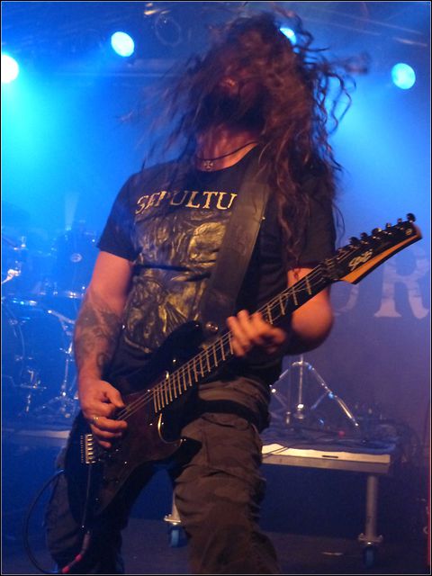 Ein Gegenpol zu den frisch zurückgekehrten Niederländern sind die in den letzten Jahren auffallend fleißigen SEPULTURA, die längst nicht mehr nur vom Ruhm der Vergangenheit zehren, sondern heute mit Sicherheit auch einige Zuschauer angelockt haben, weil sie im letzten Jahr als Clubheadliner und auf dem Rock Hard Festival absolut überzeugt haben. Abgesehen davon, dass die Tour natürlich auch eine Promofunktion für das aktuelle Album mit dem langen Namen hat, spielt wohl auch die erarbeitete breite Selbstverständnisbrust eine Rolle für den leicht gewagten Einstieg mit zwei neuen Liedern, „Trauma Of War“ & „The Vatican“, und dem ebenfalls noch recht frischen Semihit „Kairos“. Vielleicht wollten die Brasilianer aber auch einfach nur die Fotografen schonen, die wie meist nach dem dritten Lied den Graben räumen müssen, um Platz für Security und etwaige Crowdsurfer zu machen. Diese lassen auch nicht lange auf sich warten, denn mit „Propaganda“ folgt unmittelbar der erste alte Gassenhauer, bei dem die Stimmungsunterschiede sich ziemlich deutlich zeigen: Vor dem Mischpult ist bei jedem Lied Action und Stimmung, hinter dem Mischpult wird alles nach 1995 veröffentlichte eher nüchtern zur Kenntnis genommen. Minimal darf man das heute der Band selbst anlasten, denn bei aller guten Laune und allem an den Tag gelegten Engagement, fehlen ein paar Kleinigkeiten zur überragenden 2013er Form: Drummer Eloy fällt ungewöhnlich wenig auf, die Gesangsversuche von Derrick bei „The Hunt“ und Nörgelstimme Andreas bei dem „Da Lama Ao Caos“-Cover wenig positiv. Aber wir wären nicht bei SEPULTURA, wenn der Abend nicht mit einem Hitfeuerwerk enden würde, und das hat es mit der Aufeinanderfolge von „Innerself“, „Territory“, „Refuse/Resist“, „Arise“ sowie den obligatorischen Zugaben „Ratamahatta“ und „Roots Blood Roots“ gewaltig in sich und entlässt die Zuschauer ebenso schweißnass wie glücklich in die Nacht.