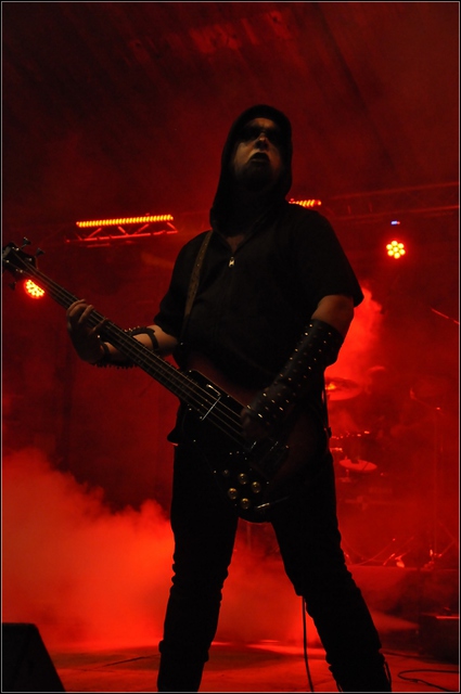 GEHENNA sind für mich mit die nettesten und sympathischsten Musiker der norwegischen Metal-Szene. Schon am Freitag liefen sie lächelnd und freundlich über das Gelände und tranken mit dem ein oder anderen ein Bierchen. Sänger Sanrabb läuft noch kurz vor ihrem Gig mit deutlicher Schlagseite zwischen den Fans rum, umso erstaunlicher, wie gerade er plötzlich auf der Bühne mit seiner Gitarre steht und einen perfekten Gig spielt. GEHENNA sind düster, GEHENNA sind bühnenerfahren und das merkt man ihnen zu jedem Zeitpunkt an. Wieder zurück zu reinem Black Metal, mit Henker von Eminenz an den Keys, spielen die Norweger eine beeindruckende Show, die leider vier Minuten früher endet, als von den Jungs geplant. Die Zeit, die Horna zuviel hatten, wird bei GEHENNA gekürzt. Sanrabb und Byting sind sichtlich angepisst. Byting knallt seinen Bass auf den Boden und sie verlassen die Bühne. Einzig und allein Drummer Slatarinn und Gitarrist Skindød bleiben gelassen. Frontmann und Basser beruhigen sich hinter der Bühne aber ganz schnell und schenken Veranstalter Heiko noch eine Flasche mit einem heimischen Getränk. Sie sind halt wirklich nett.